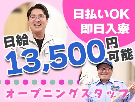 | 給与 | 日給10,000円〜13,500円+入社祝金4,000円 ★交通費支給 ┗自身の車、電車で現場に向か... |