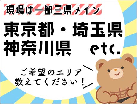 ☆東京都、埼玉県、神奈川県を中心に現場多数あり!希望の勤務地などご相談ください。